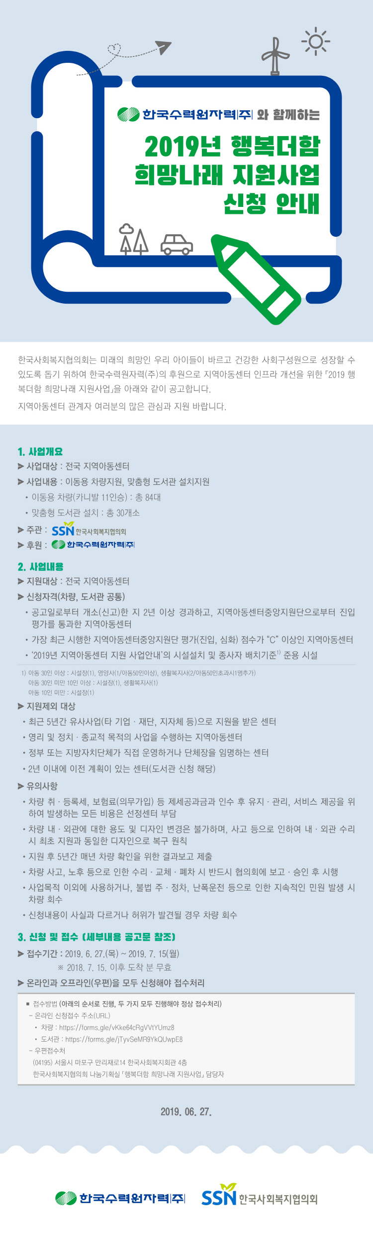한국사회복지협의회, 한국수력원자력의 지원사업을 다음과 같이 알려드리오니 참고하셔서