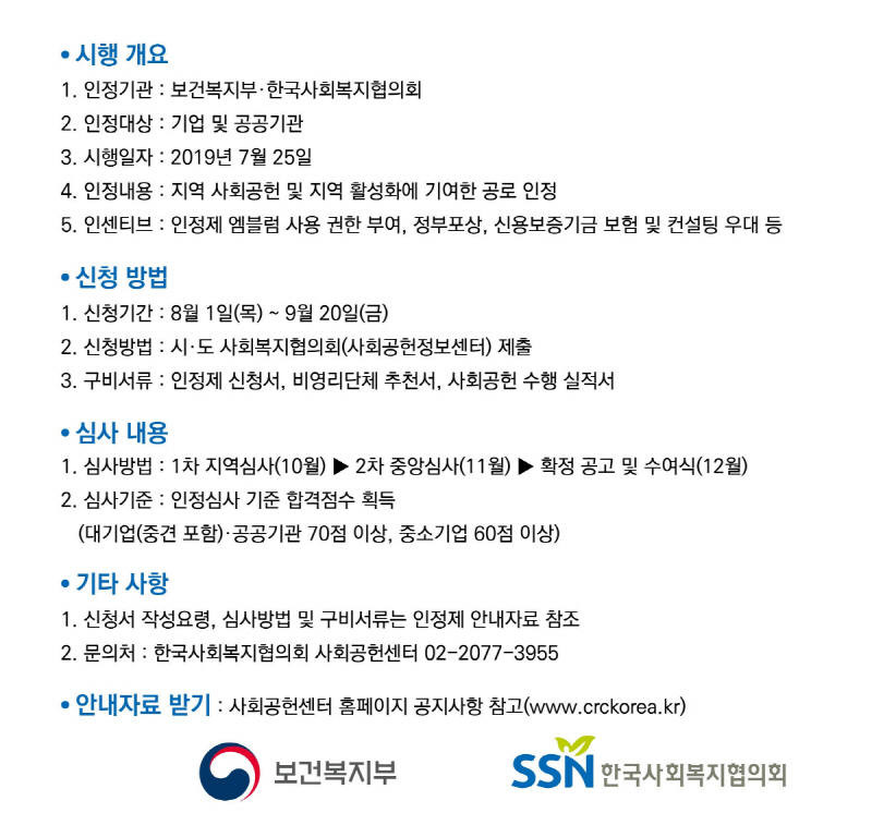 - 문의처 : 한국사회복지협의회 사회공헌센터 02-2077-3955