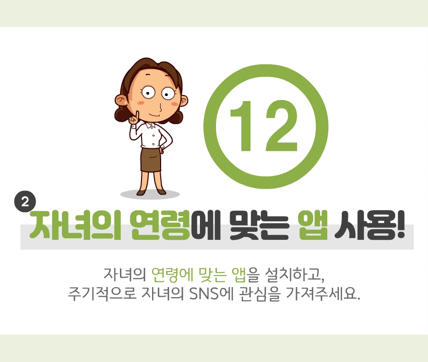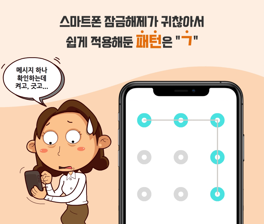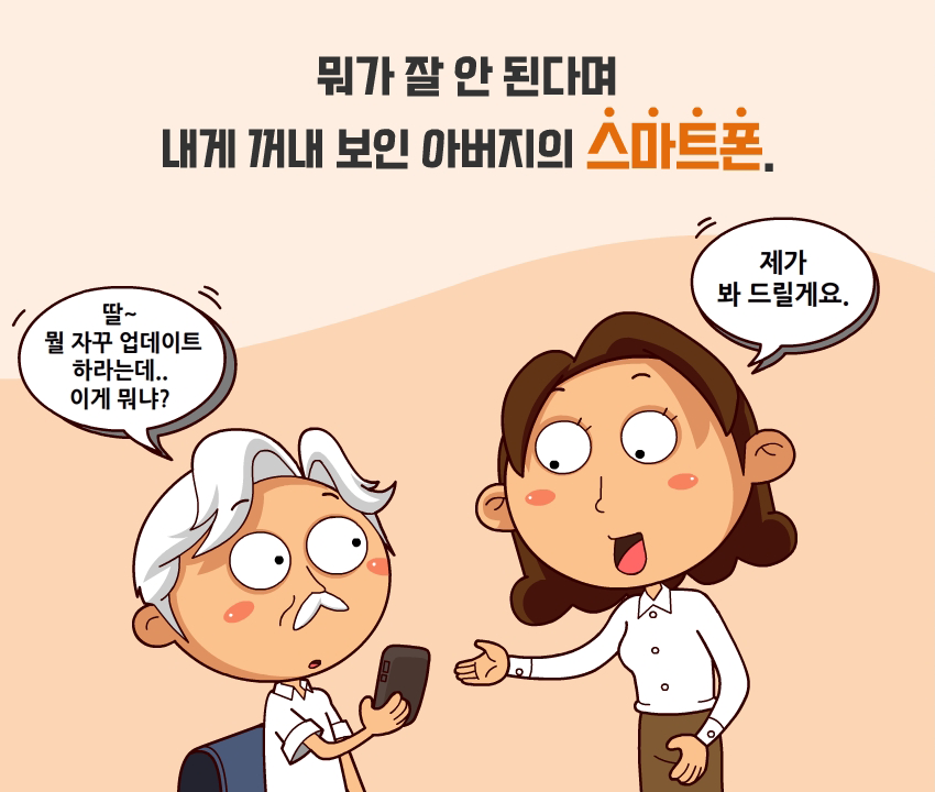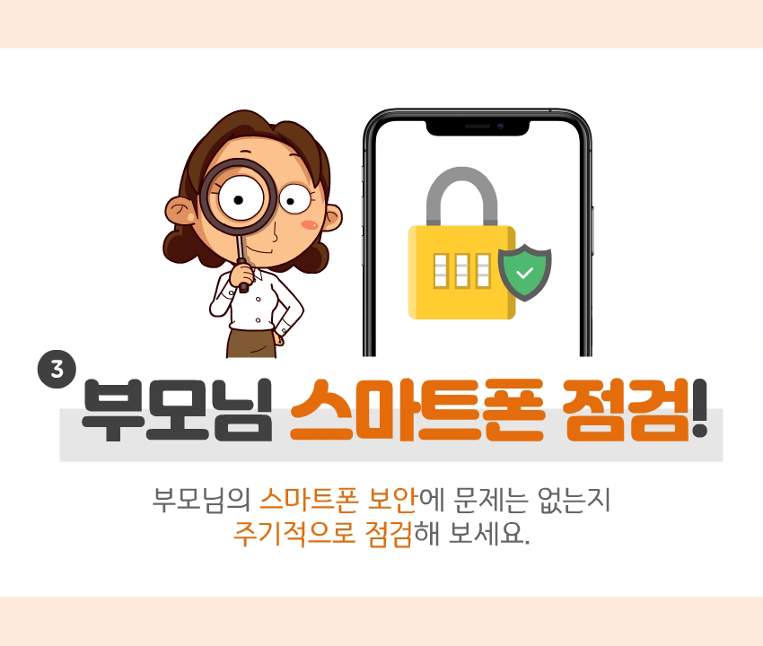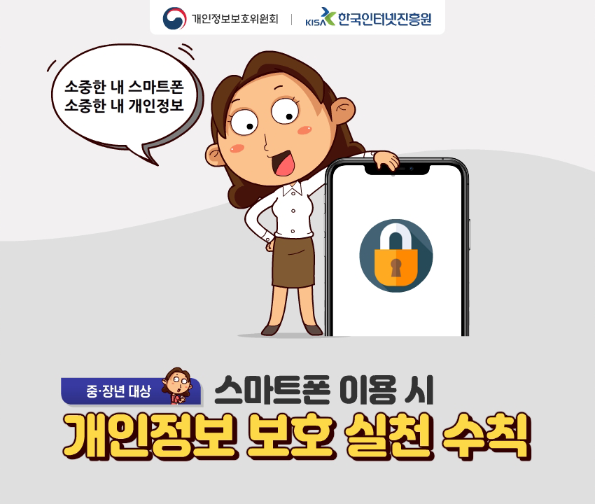 * 개인정보보호 실천수칙(중장년편)에서는 가족안전, 스마트폰이용, 일상생활속 편이 순서대로 소개됩니다.