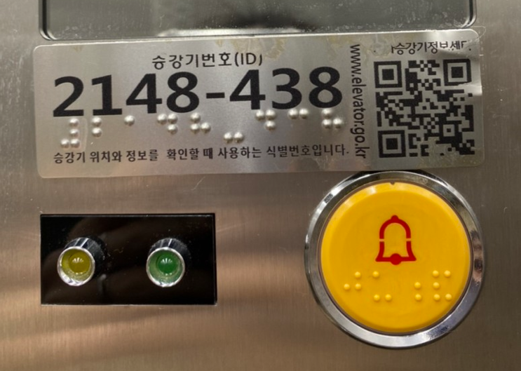 끝으로 승강기 이용중 위급상황이 발생하면 사진과 같은 승강기 고유번호를 통해 위기에 대응할 수 있다.