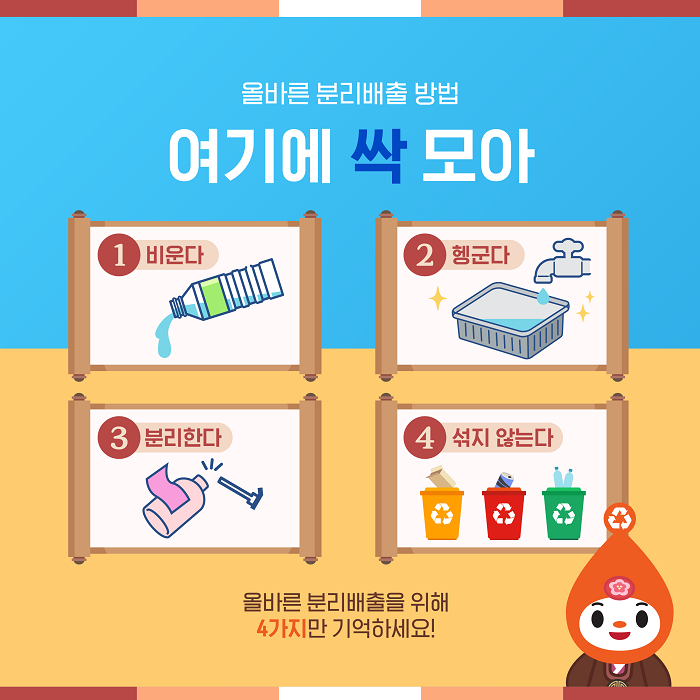 4. 재활용품은 재질별로 구분해서 버린다.