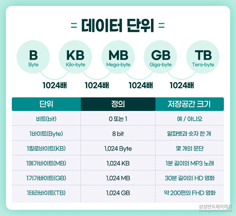 끝으로 디지털 데이터의 단위를 간략히 표기하면서 맺고자 합니다.