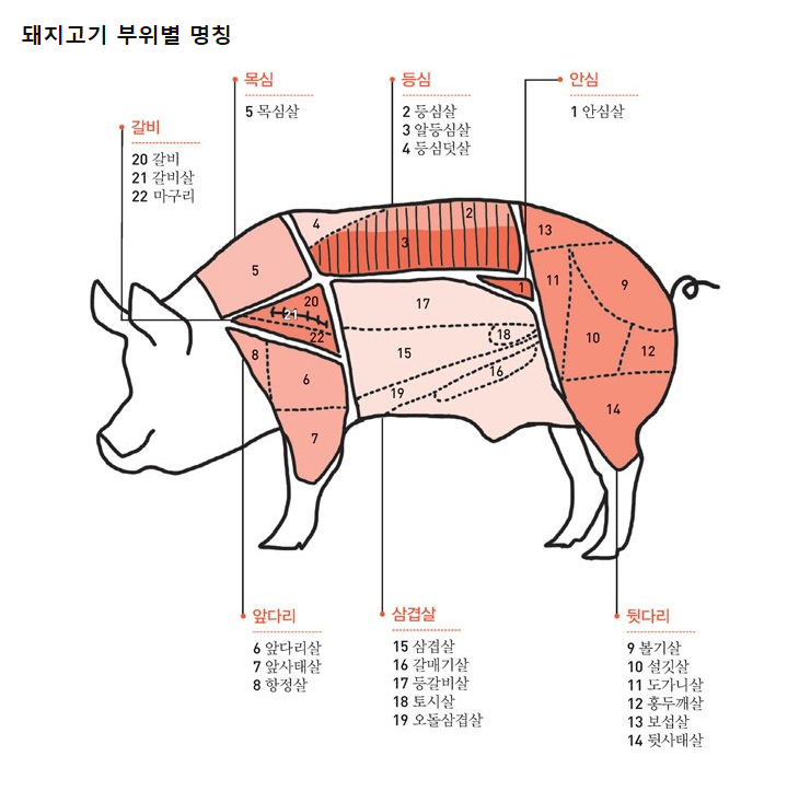 우리가 먹는 돼지고기의 부위별 명칭들을 다 알고 계신가요?