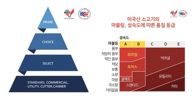 미국 등급 : 프라임, 초이스, 셀렉트, 스탠다드, 커머셜, 유틸리티, 커터