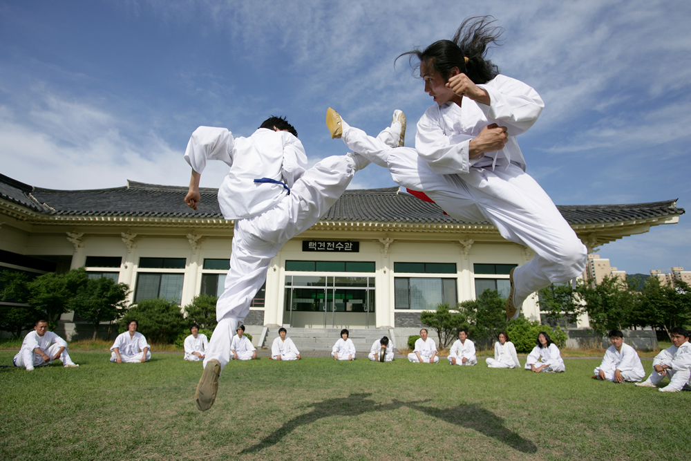 | * 태껸 : 우리나라 고유의 전통 무예의 한 가지. 발로 품자(品字)를 밟으면서 몸을 유연하게 움직이며 팔을 상하좌우로 흔들고 앉았다 일어섰다 하며 상대방을 공격하는 무술이다. 예) 이번 행사에서 한국전통의 태껸 시범행사가 진행될 예정입니다. 1983년 6월 1일 중요 무형 문화재 제76호로 지정되었으며, 2011년 유네스코 세계 무형 유산으로 지정되었다. |