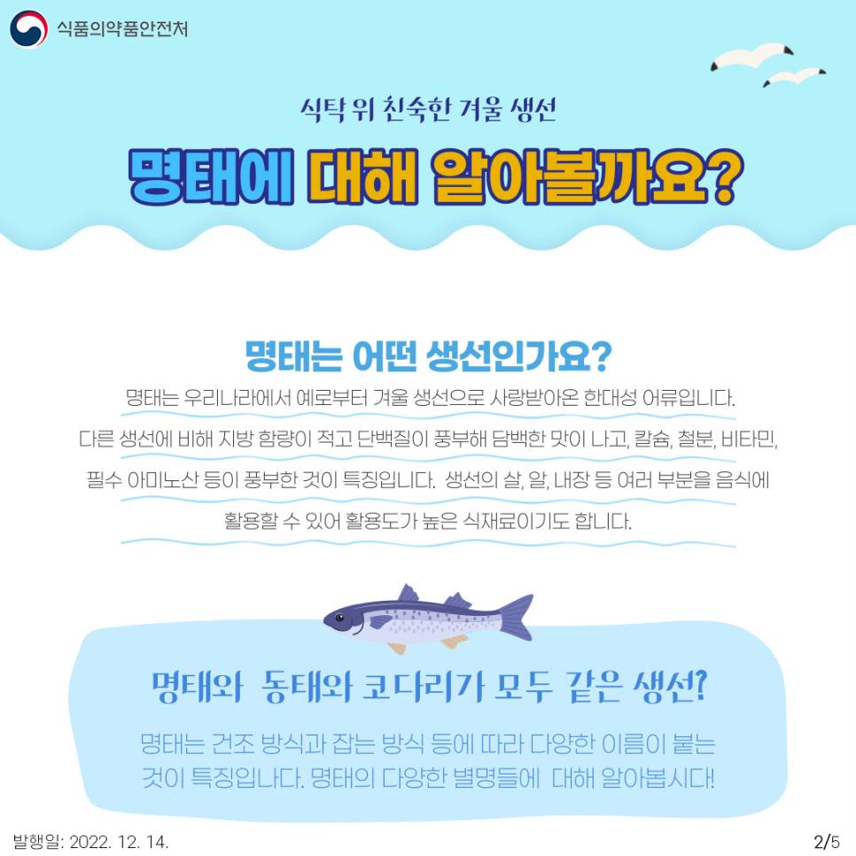 끝으로 명태이야기에 대한 식품의약품안전처의 카드뉴스를 보시고 마무리하겠습니다.