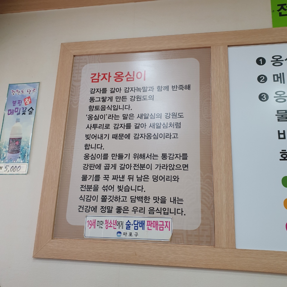 메뉴판 옆을 보면 감자옹심이의 효과와 제조방법이 설명되어 있으니 기다리면서 읽어보셔도 좋습니다.