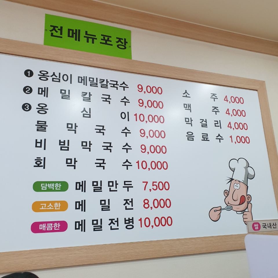 저는 옹심이칼국수('옹칼'이라고도 부릅니다.)를 시켰지요.