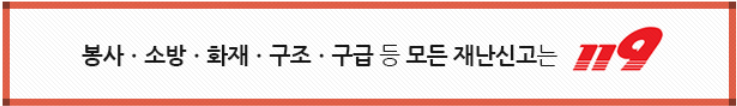 혹시라도 안전사고가 발생한다면 지체 없이 신고하세요. ☎ 119