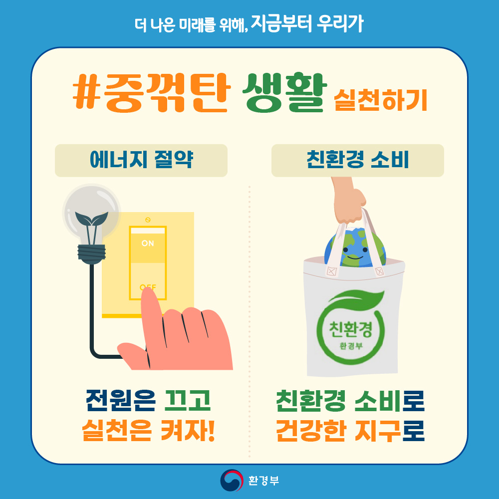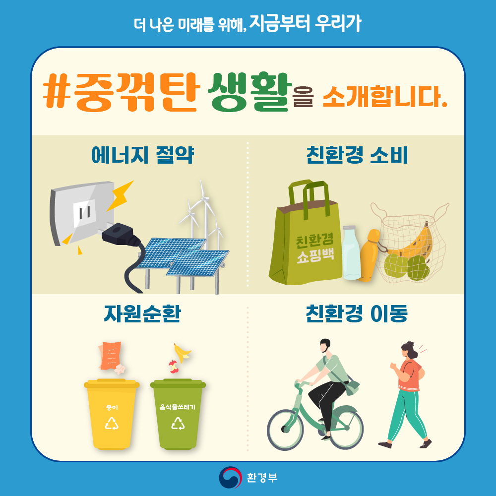 이렇게 제정된 날을 기념하고 지구환경보전을 위한 노력을 위해 환경부는 중꺽탄 챌린지를 시작한다고 하는데 '중꺾탄'은 무엇일까요?