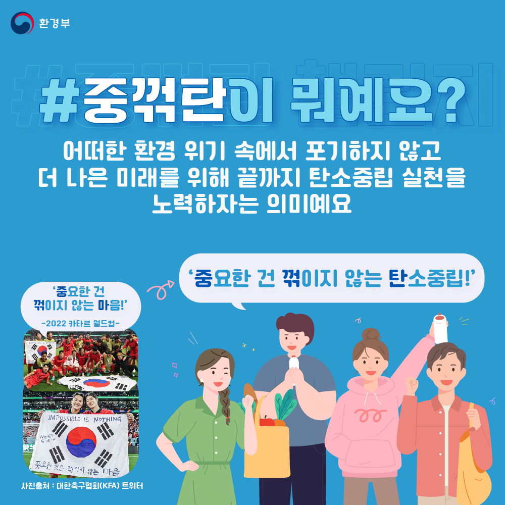 중꺾탄은 '중요한 건 꺾이지 않는 탄소중립!' 이라는 말의 약자라고 합니다.