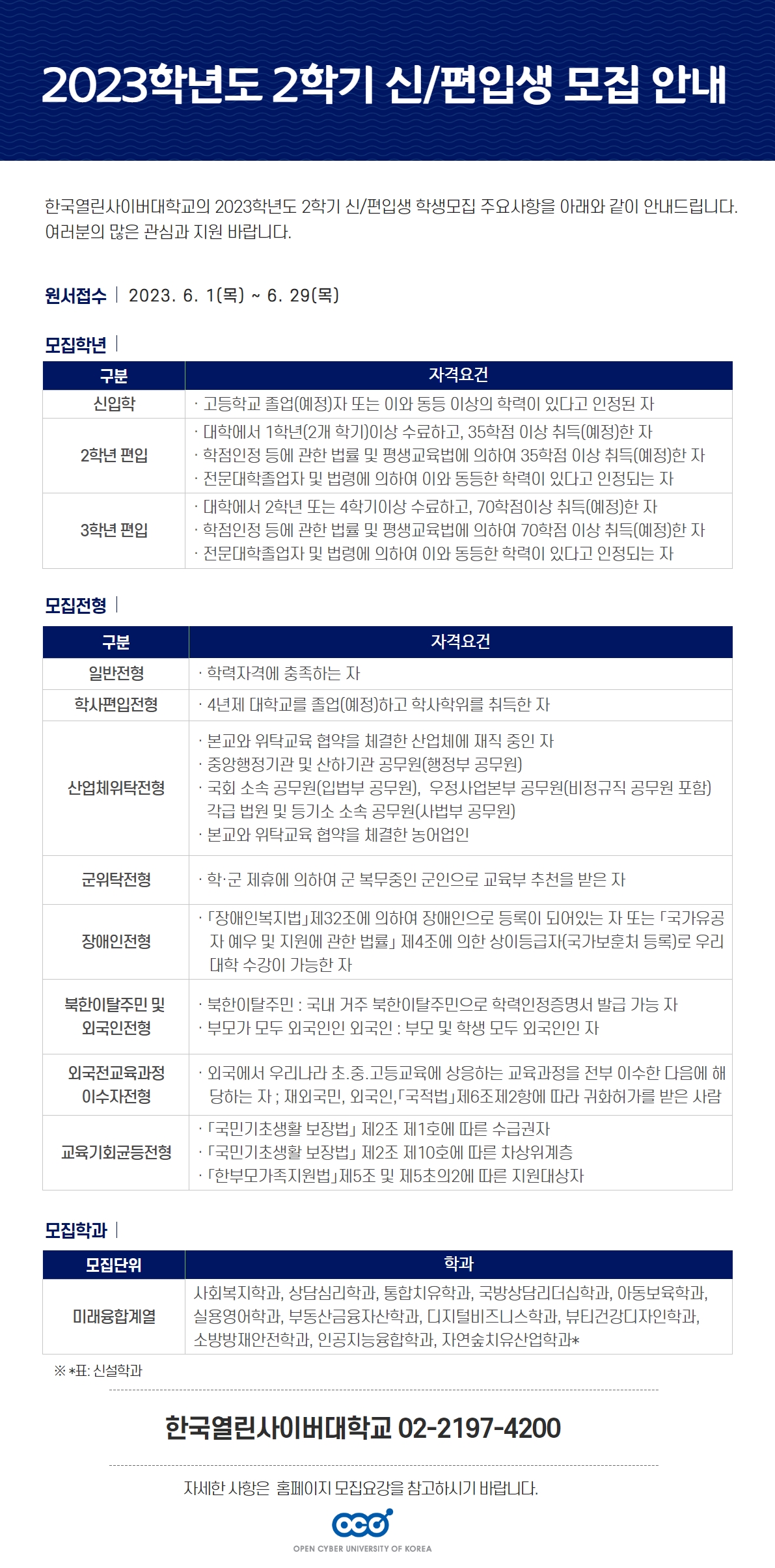 2023학년도 2학기 사이버대학교 신·편입생 모집 안내