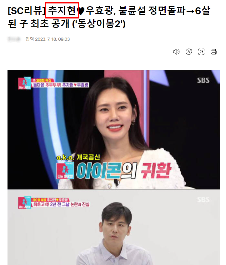 SBS 동상이몽2-너는 내 운명 프로그램에서 4년만에 모습을 드러낸 추자현과 우효광의 모습