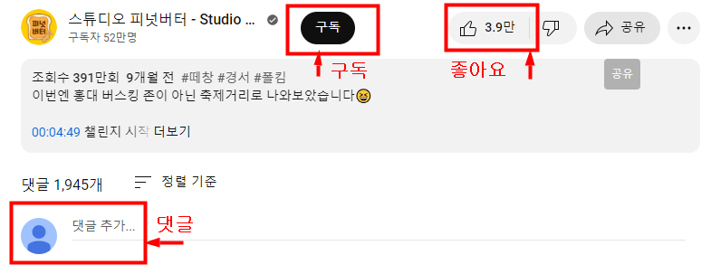 유튜브에서 예를 들면 아래에서 보시는것처럼 각각 해당 기능을 이용하실 수 있습니다.