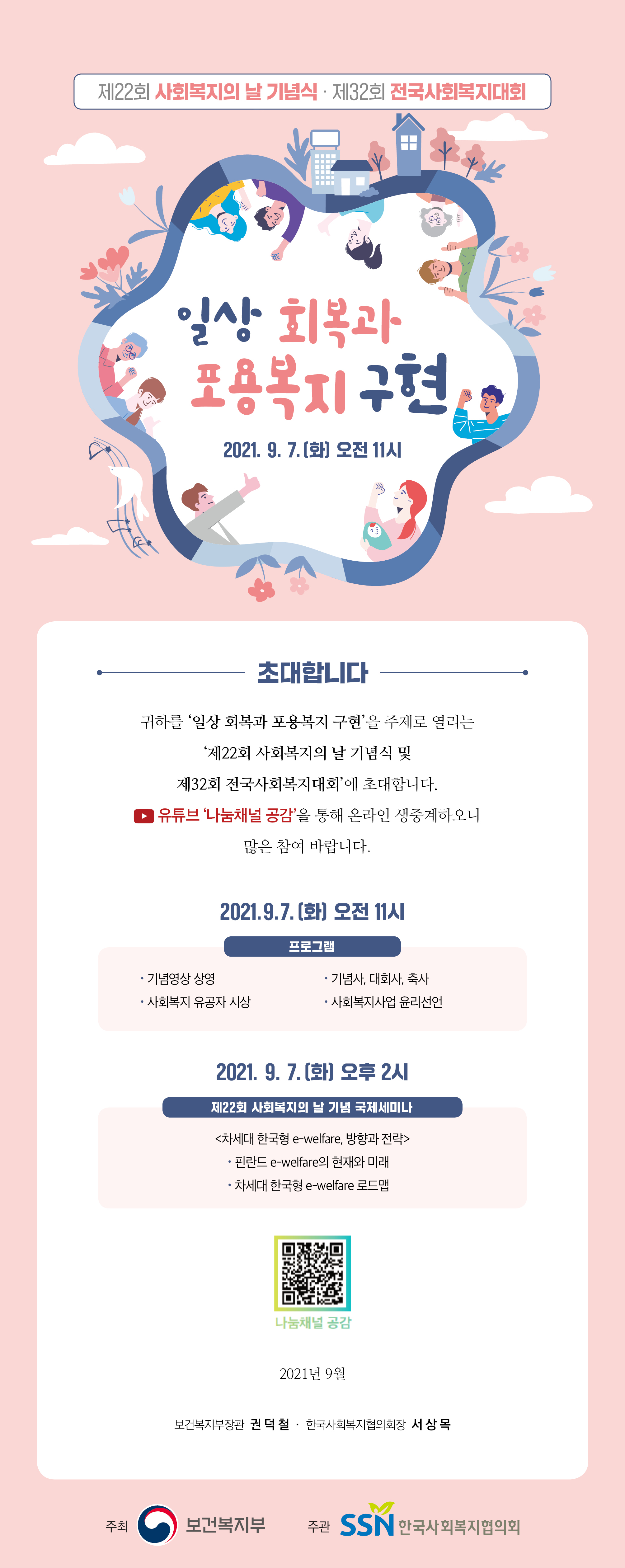 º ‘00년 9월 7일 제1회 사회복지의 날 기념식 및 제11회 전국사회복지대회 개최, 이후 매년 사회복지의 날 기념식 및 전국사회복지대회 개최(주최 : 보건복지부/ 주관 : 한국사회복지협의회)