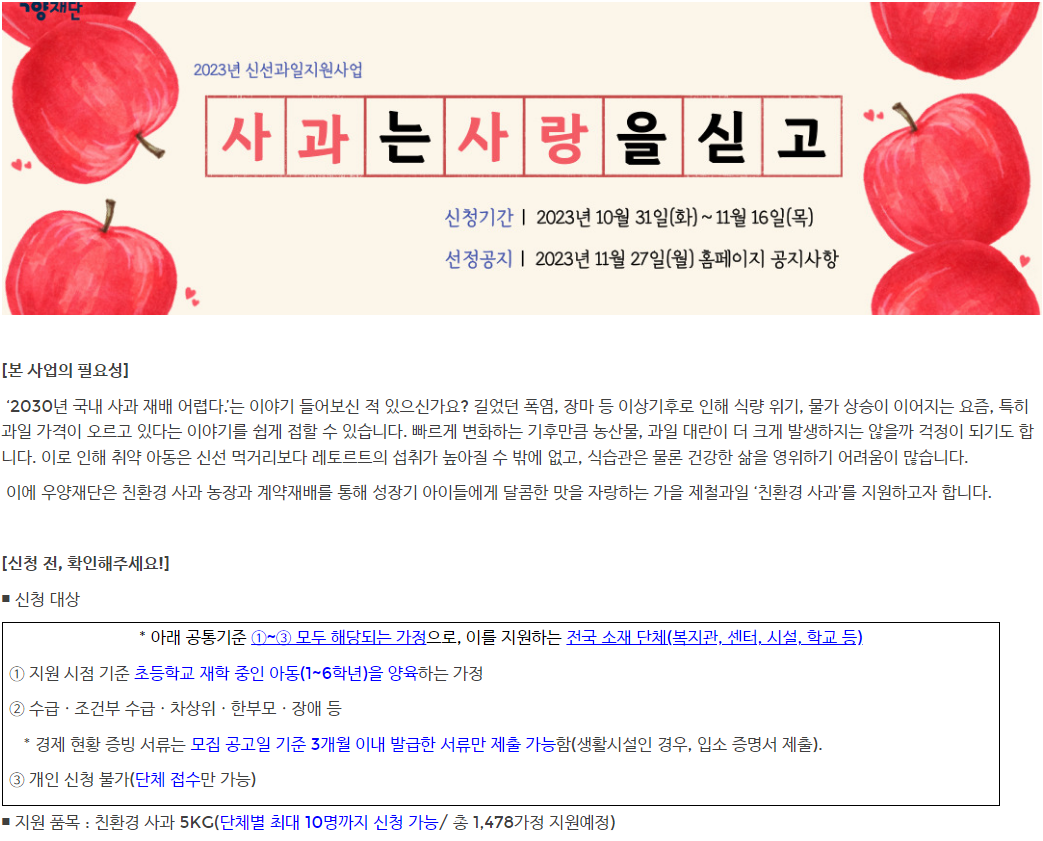 ▣ 2023년 신선과일지원사업, 사과는 사랑을 싣고...