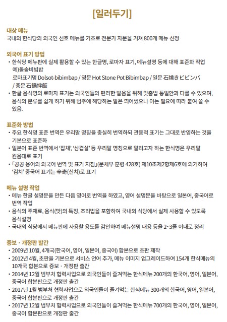 - 국내에 방문하는 외국인들에게 한식메뉴를 설명 할 때