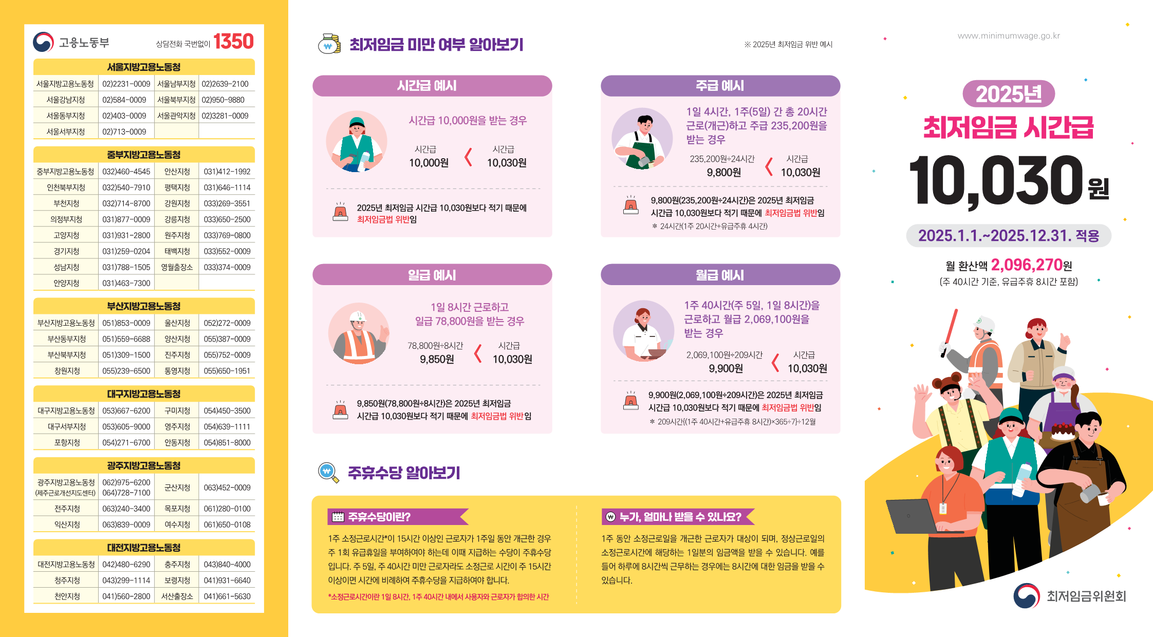 잘 살펴보시고 충분히 보장받는 근무를 위해 최저임금위원회에서 발표한 안내문과 전단지를 소개해드리오니 참고하시고 건강하고 안전한 근로환경이 되시길 바랍니다.