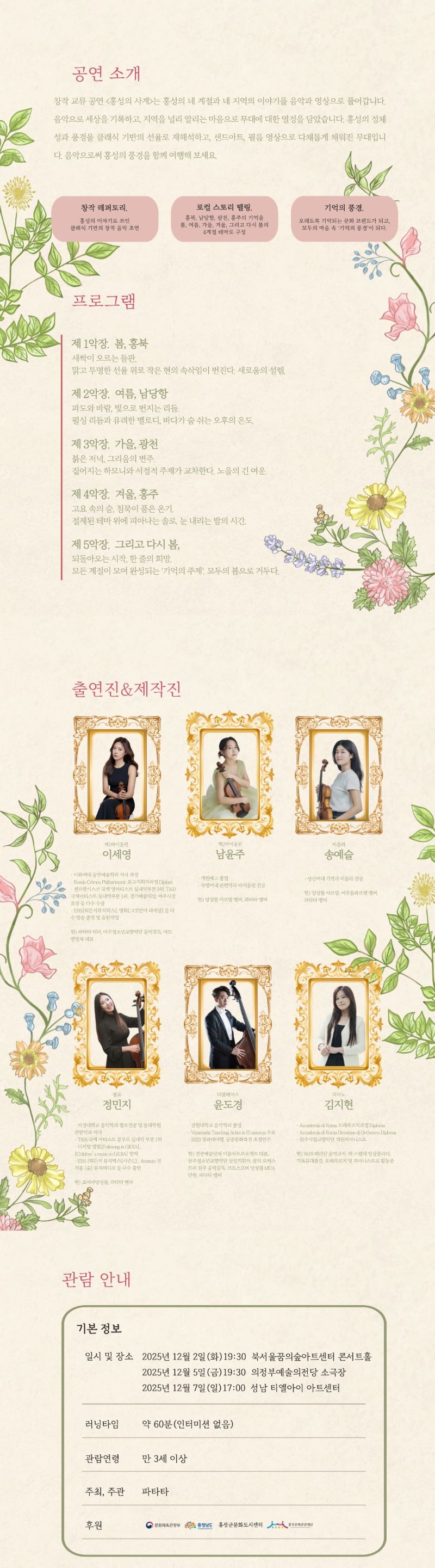 * 음악콘서트 <홍성의 사계> 공연 상세정보 *