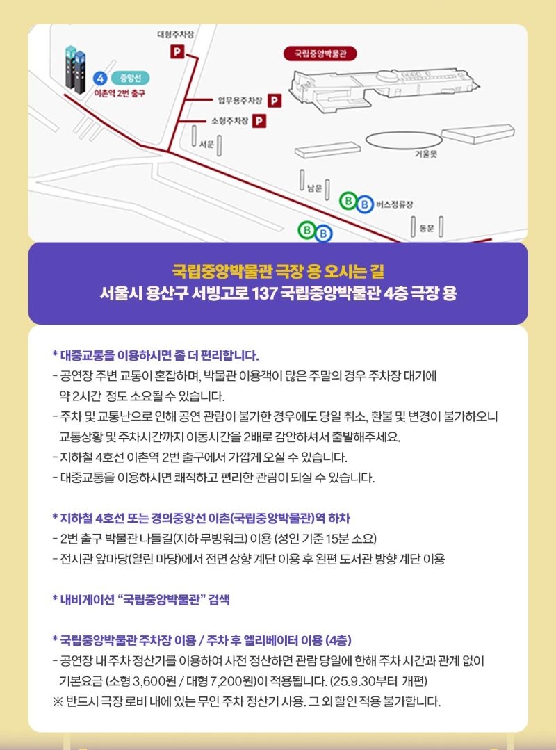 ▣ 주차요금 : 극장 용 공연관람시 3,600원(무인정산기 이용)