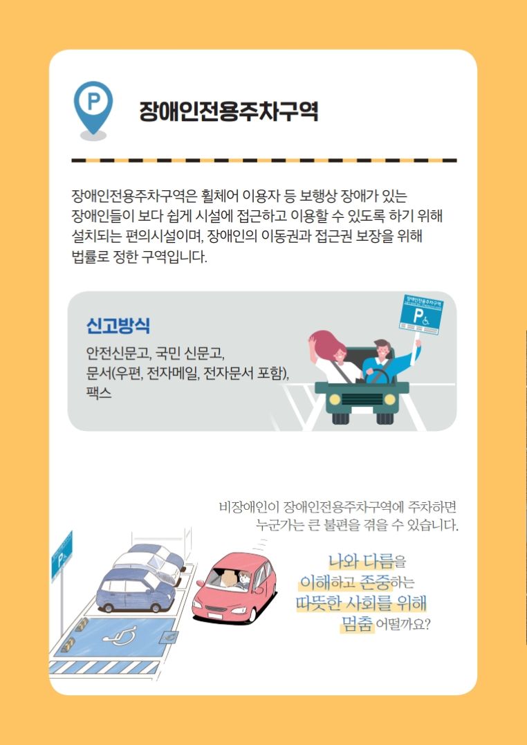 장애인 전용 주차구역을 이용하는 우리의 자세는 많은 분들이 알고 있지만
